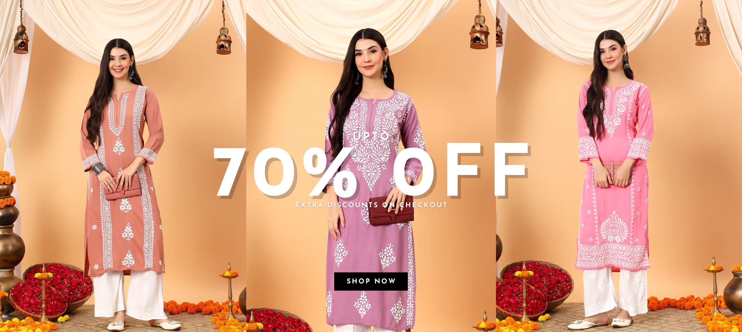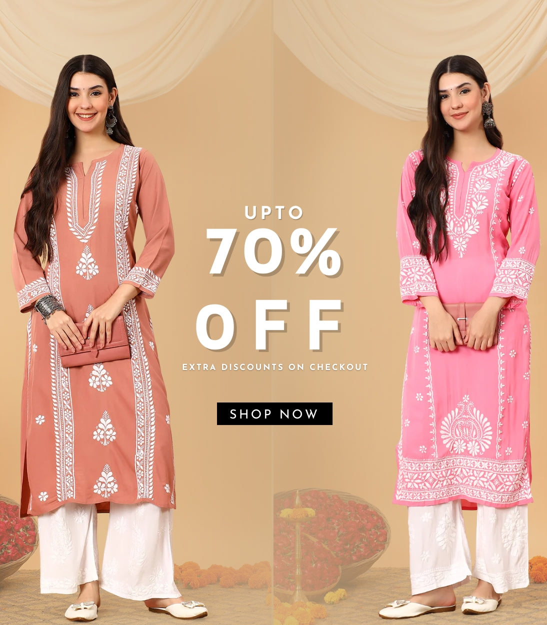 Pair our kurtis with comfortable, stylish bottomwear including palazzos and straight pants—all crafted to complete your Chikankari look effortlessly.