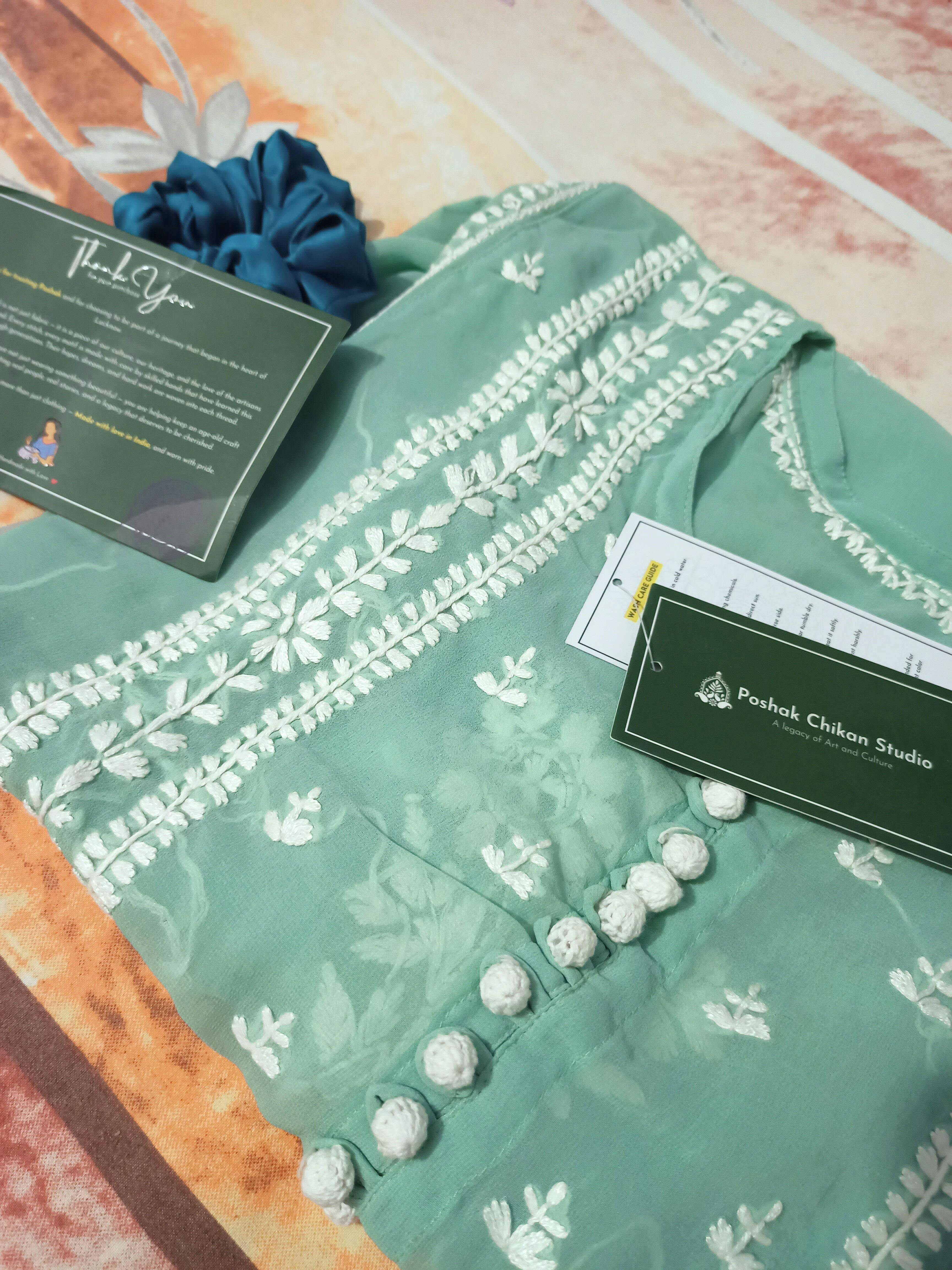 100% Handcrafted Chikankari embroidery.