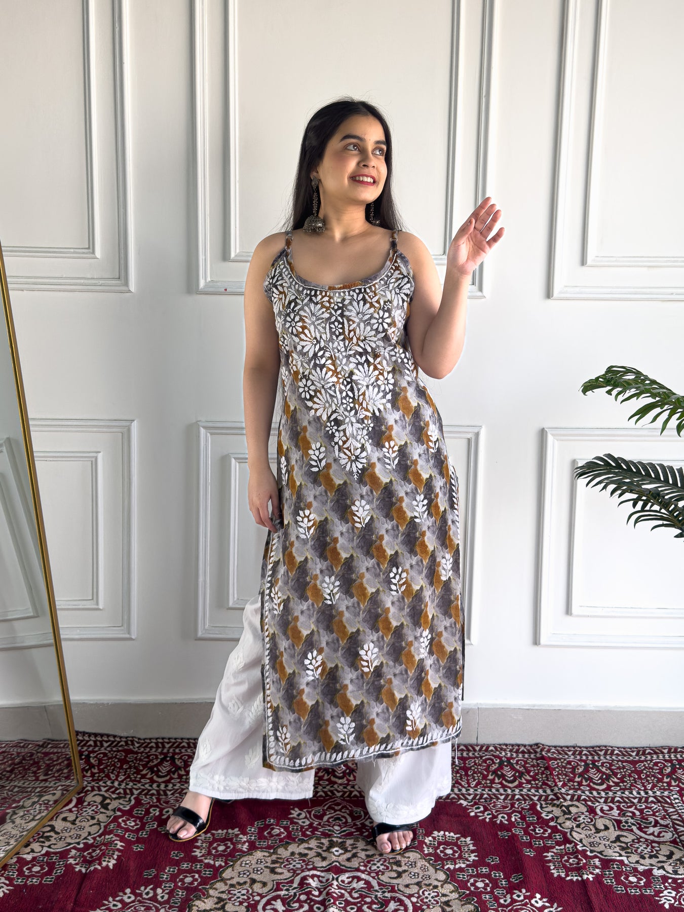 Chitra Mulmul Chikankari Strappy Straight Kurta